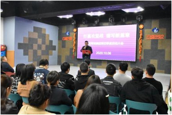2020年10月06日晚,新陽駕培集團在岳陽市云端藝校演播廳召開第三季度工作總結表彰暨第四季度啟動大會。19時許,全體教職工在氣勢磅礴的宣誓詞和激昂的教練之歌的歌聲中拉開帷幕。